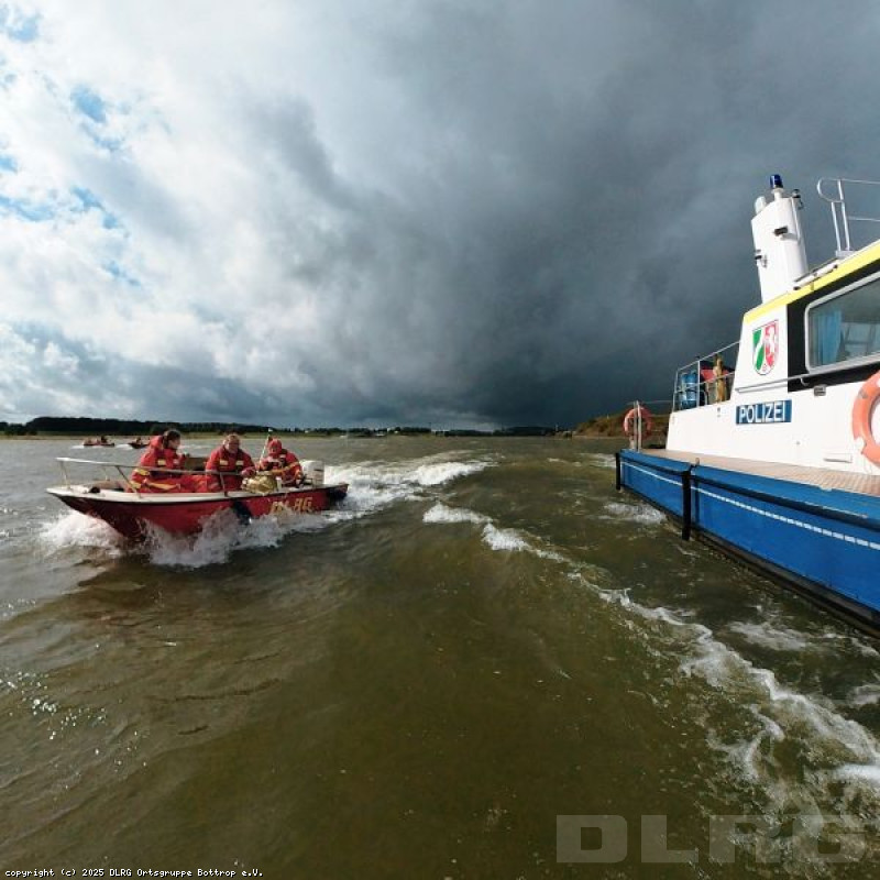 Am 04.10.2025 fand eine gemeinsame Übung der DLRG Bottrop und DLRG Waltrop statt. Von 8 bis 16 Uhr trainierten unsere Einsatzkräfte unter realistischen Bedingungen auf dem Rhein. Auch der Regen konnte uns nicht aufhalten.